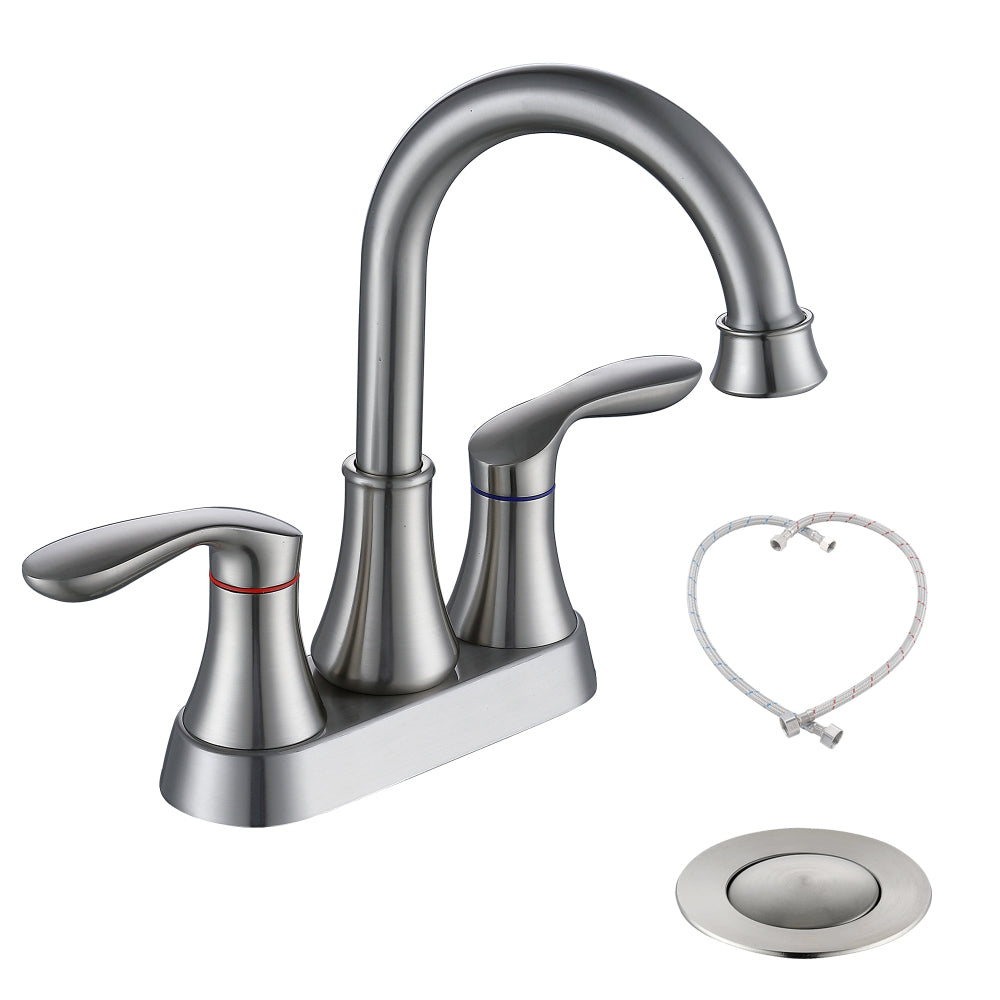 - 2. MODERN DESIGN: Two-Handle installation for effortless flow and water temperature control. The handle torque can reach up to 18MM, which greatly extends the handle life.(The current industry standard is 9MM). The high-quality ceramic & copper cartridge has passed 500,002 cycles of water tightness test to ensure that the brushed nickel bathroom faucet is stable.