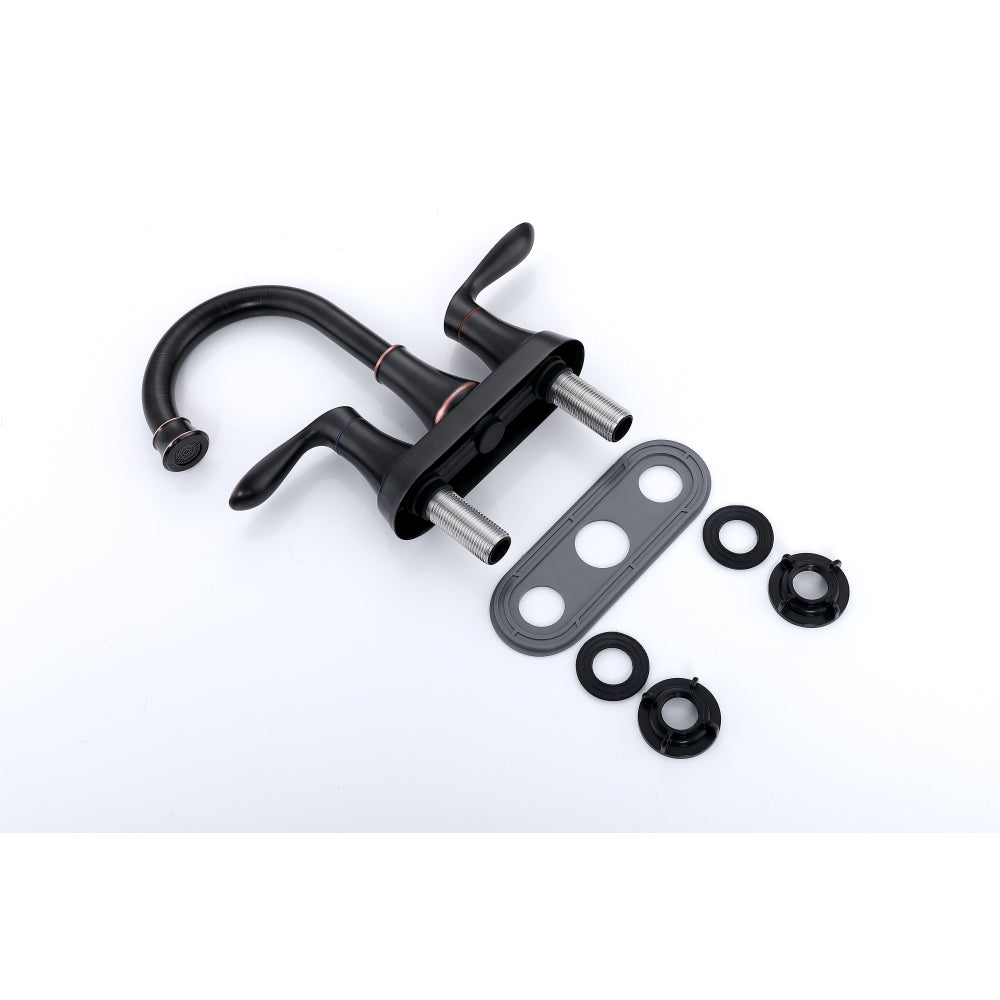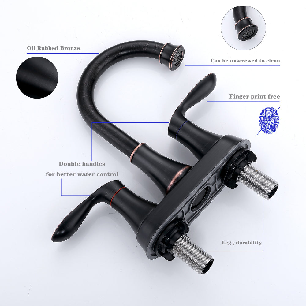 2-Handle 4-Inch Oil Rubbed Bronze Bathroom Faucet, Bathroom Vanity Sink Faucets with Pop-up Drain and Supply Hoses