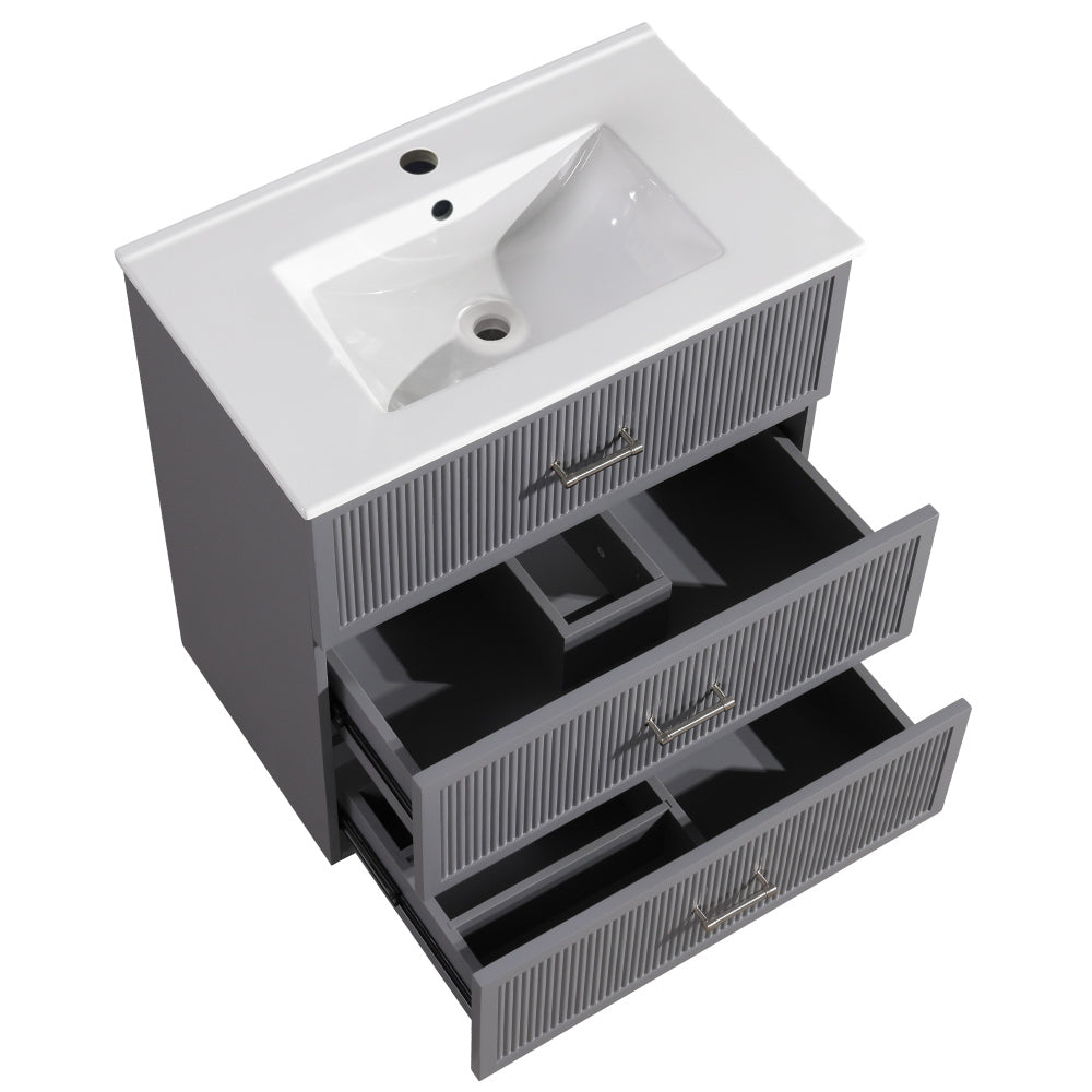 30 Inch Bathroom Vanity with Ceramic Sink Combo Set, Modern Freestanding Bathroom Storage Cabinet with 2 Drawers, Floor Standing Bath Vanity, Gray