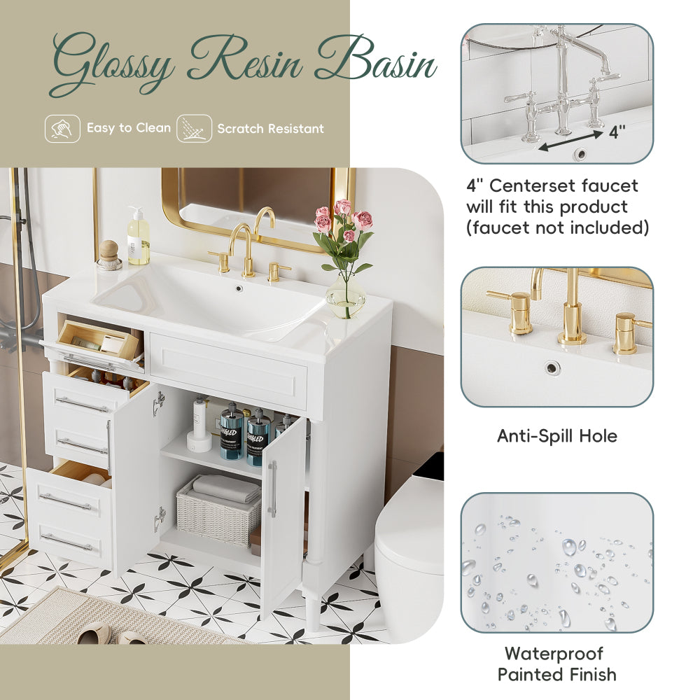 36'' Bathroom Vanity with Top Resin Sink, Freestanding Bathroom Storage Cabinet with 2 Drawers and a Tip-out Drawer, Solid Wood Frame Vanity Set, Height Adjustable Shelf