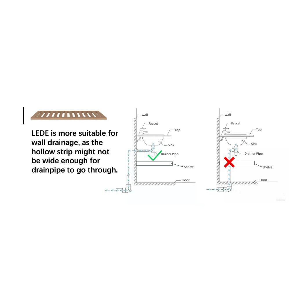 Please noted that LEDE is more suitable for wall drainage, as the hollow strip might not be wide enough for the drainpipe to go through.