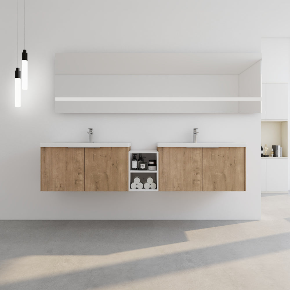 - [Floating Bathroom Vanity]The floating design makes the product more simple and generous. The space at the bottom can be more convenient for placing dirty clothes baskets and daily cleaning.